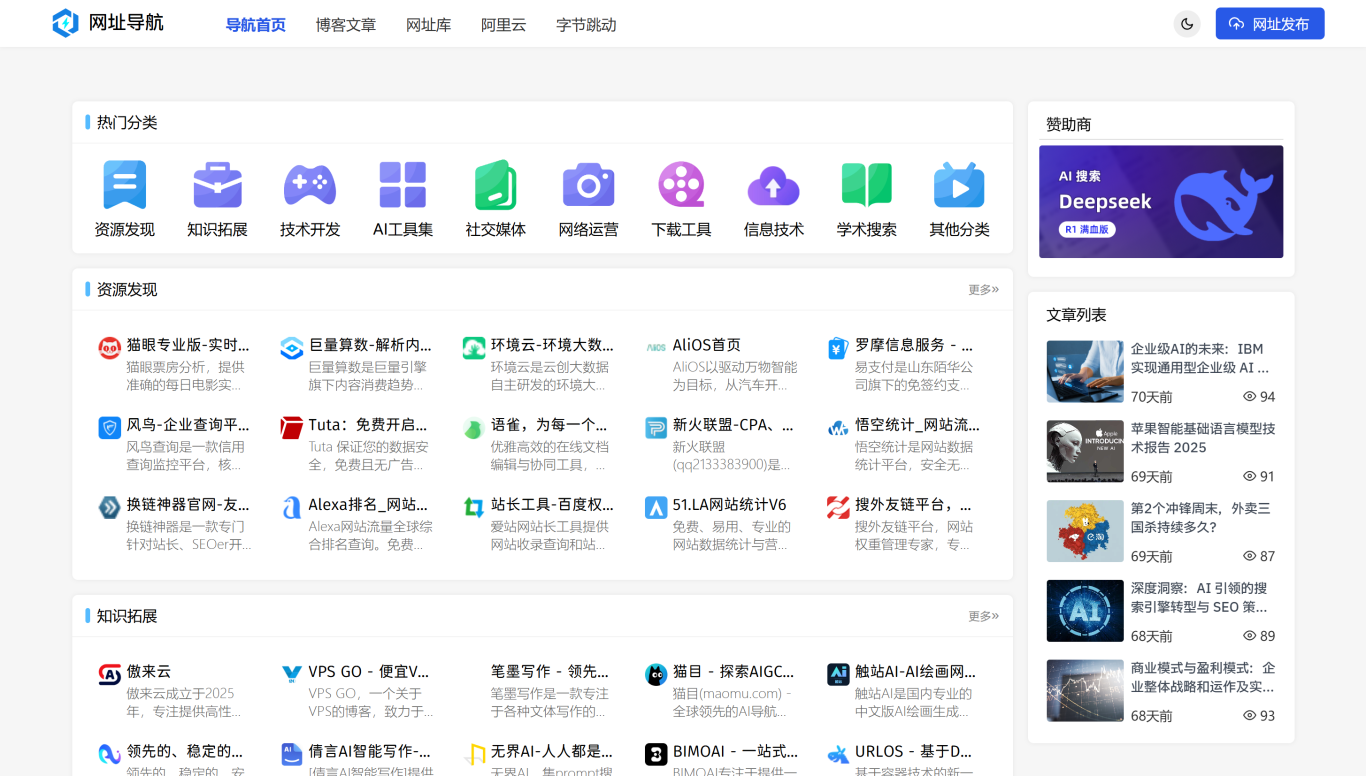 项目介绍indexCMS发布于2024年初,基于自研PHP框架开发,不依赖任何第三方组件,采用前后端分离架构,系统资源占用低,加载速度快,专为导航网站设计,拥有更专业的管理后台,更简化的交互设计,可快